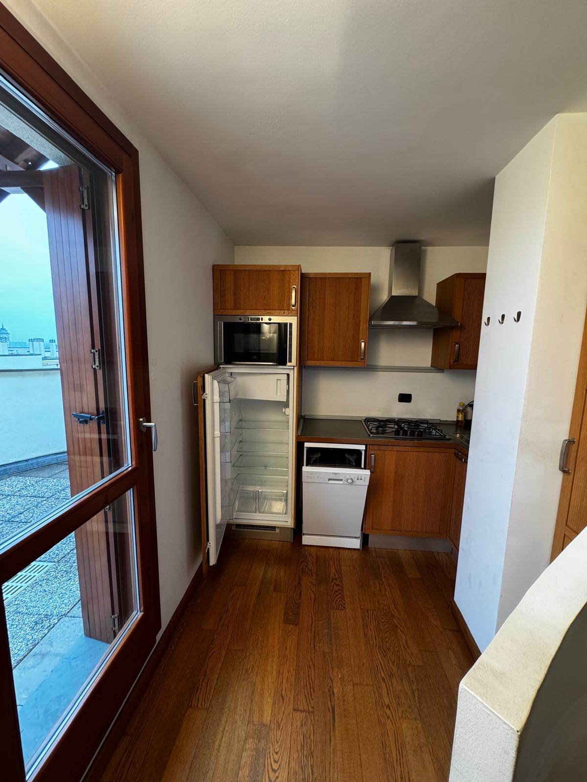 Attico – Ultimo Piano con Vista Panoramica In stabile signorile con servizio di portineria attivo tutto il giorno e doppio ascensore, proponiamo in locazione elegante attico sito all’ottavo e ultimo piano, caratterizzato da splendida vista panoramica e ottima luminosità. L’immobile è così composto: ingresso, soggiorno con cucina a vista, camera da letto matrimoniale con cabina armadio, bagno finestrato dotato di box doccia. L’appartamento è completamente arredato e accessoriato, fornito di lavatrice, lavastoviglie, forno, frigorifero e cucina a gas. Riscaldamento centralizzato. Disponibile da subito. Canone mensile: € 1.100 + € 100 di spese condominiali (comprensive di riscaldamento e portineria). Utenze escluse. Contratto transitorio, richiesti tre mesi di cauzione e un mese anticipato. Per informazioni e appuntamenti: Gianluca – 339 2430908
