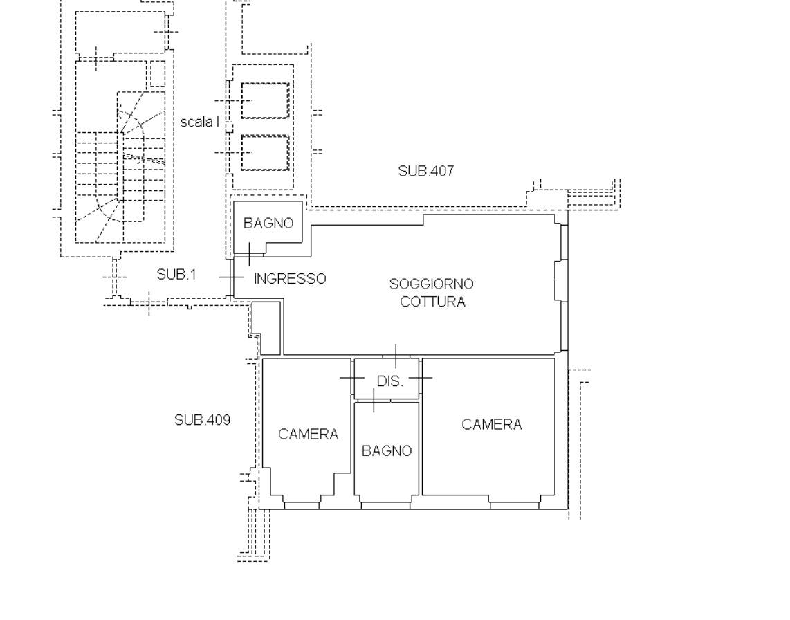 COMPOSTO DA: Ingresso, bagno di servizio, soggiorno con cucina a vista, disimpegno notte con 2 camere da letto e bagno padronale.