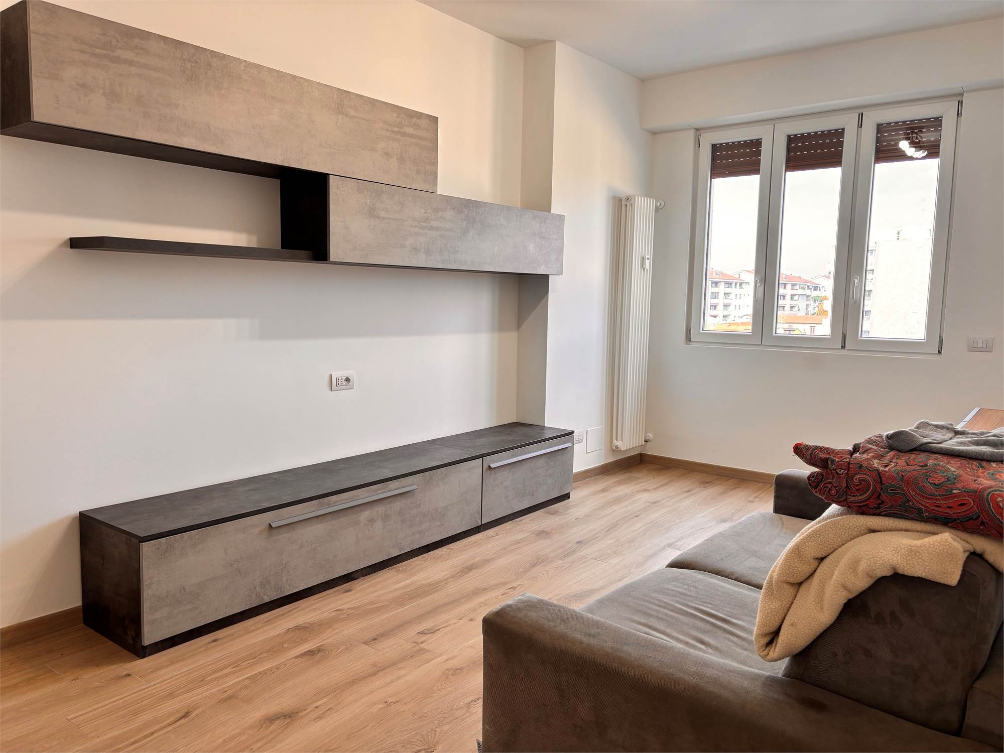 COMPOSTO DA: Soggiorno, cucina abitabile, disimpegno notte, camera matrimoniale e bagno finestrato. L'immobile gode di due balconi, uno in zona giorno e uno in zona notte.