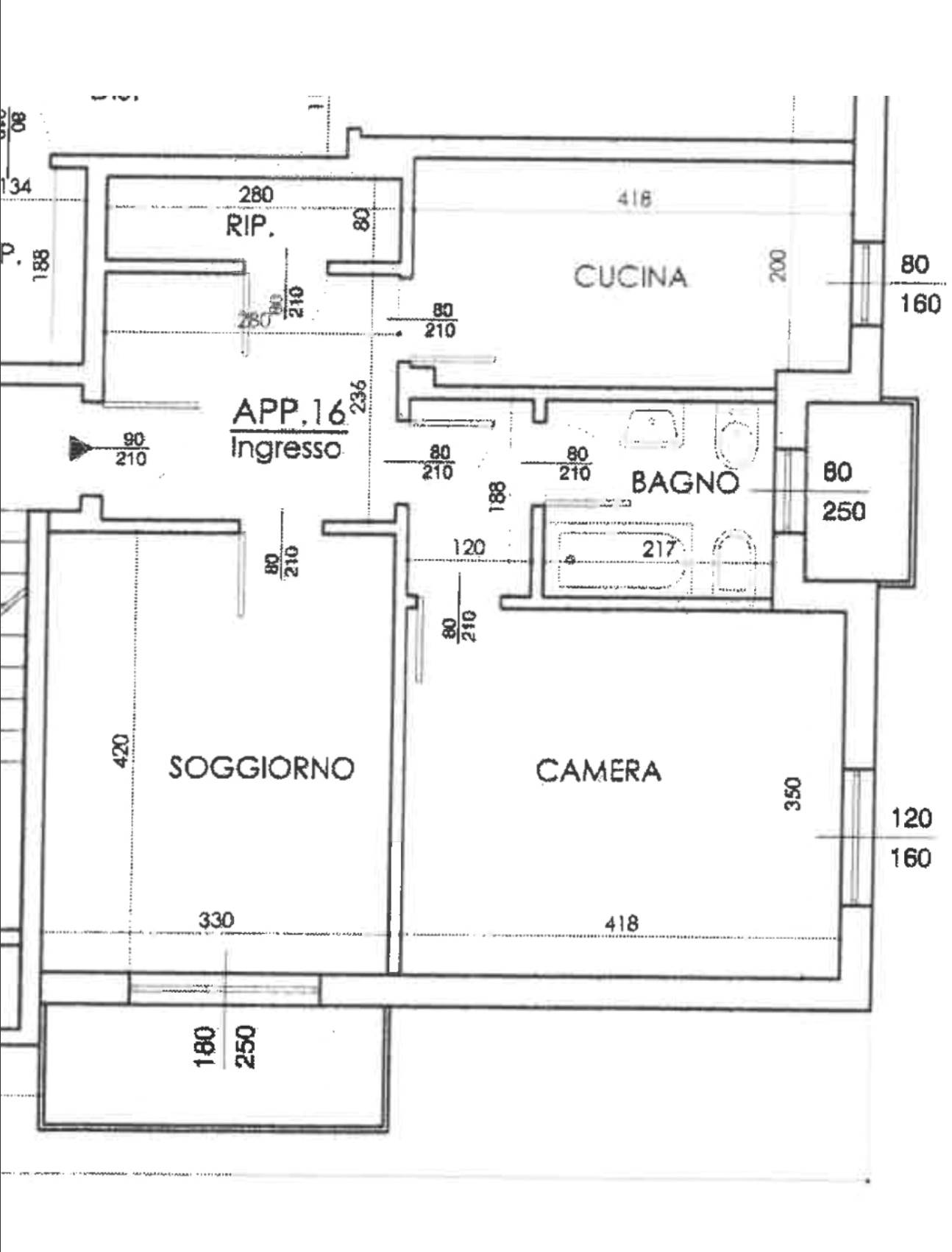 COMPOSTO DA: Ingresso, ampio soggiorno con uscita sul balcone, ripostiglio, cucina, disimpegno, camera matrimoniale e bagno finestrato.