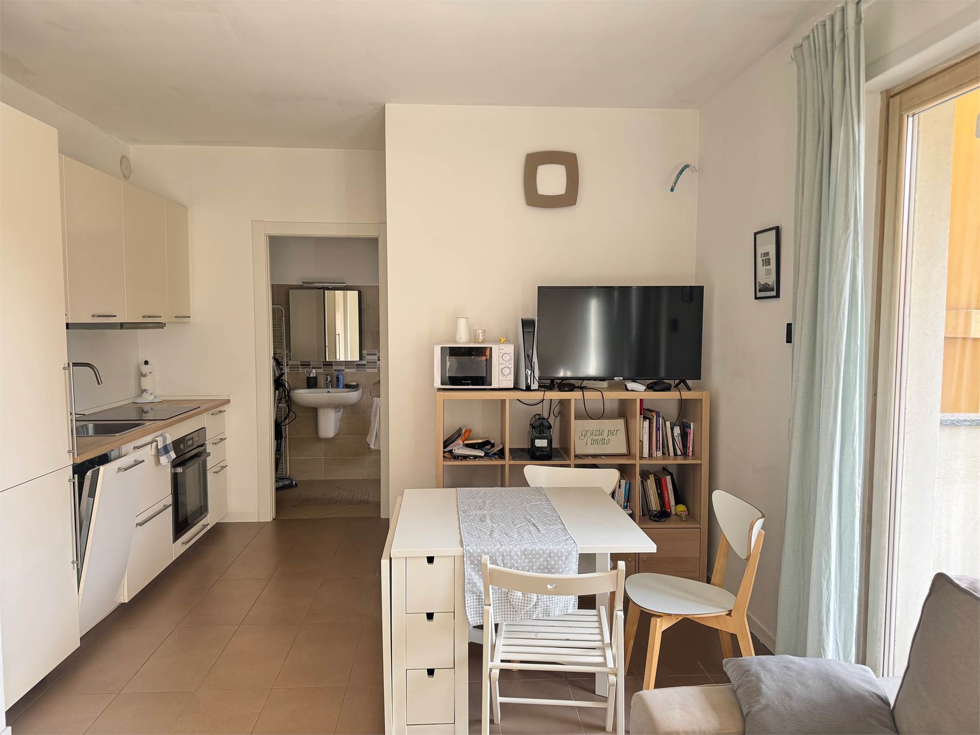 Ingresso su zona giorno/notte con cucina a vista completamente attrezzata